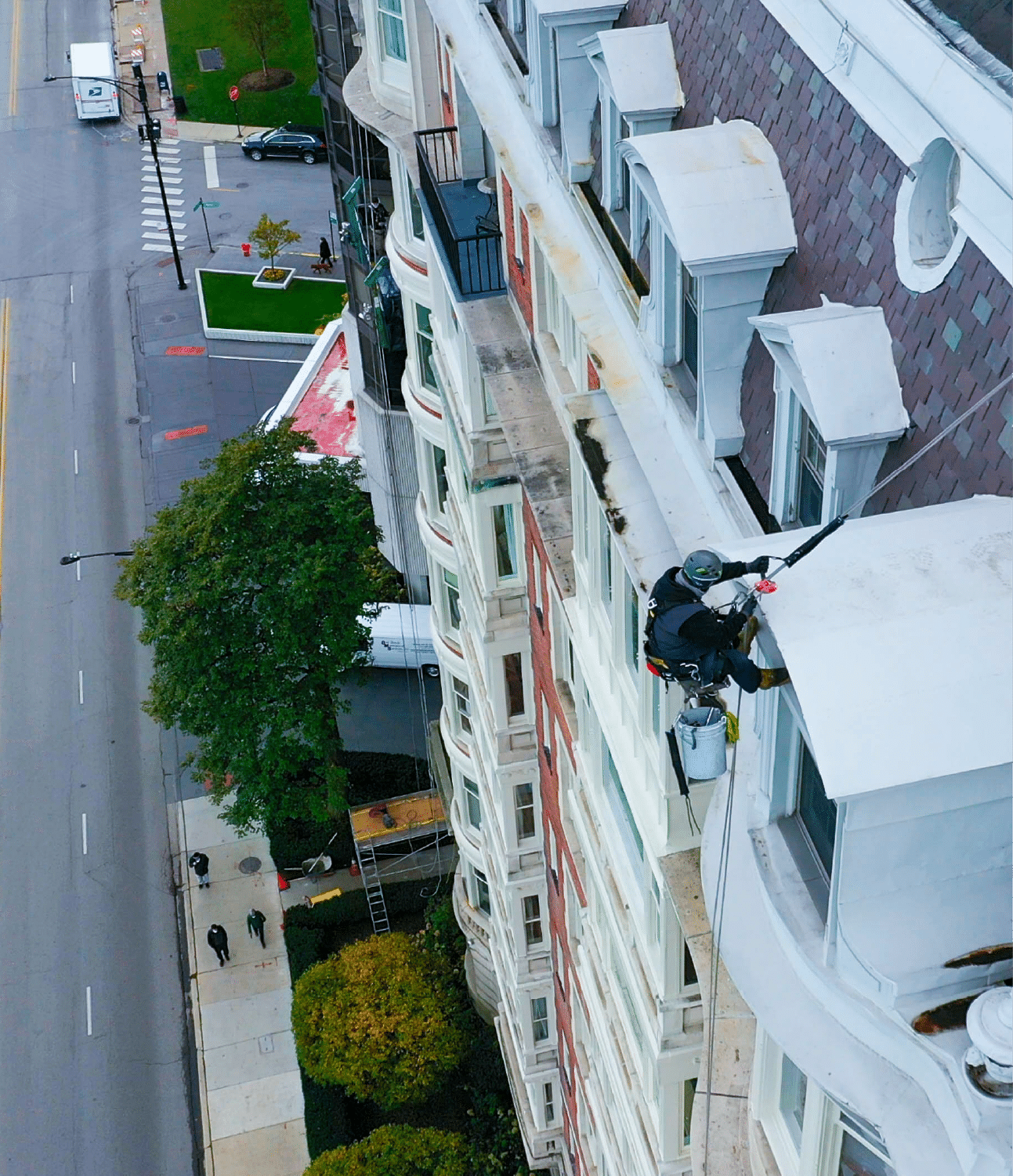 Rope access is often the only feasible method for complex building shapes, narrow alleys, or highly elevated surfaces.